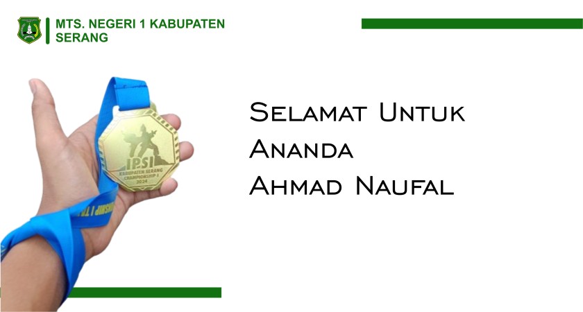 [24 Januari 2024] Alhamdulilah Siswa Kita atas Nama Ahmad Naufal berhasil menyabet emas dalam kejuaraan pencak silat tingkat Serang & Cilegon, kategori tanding